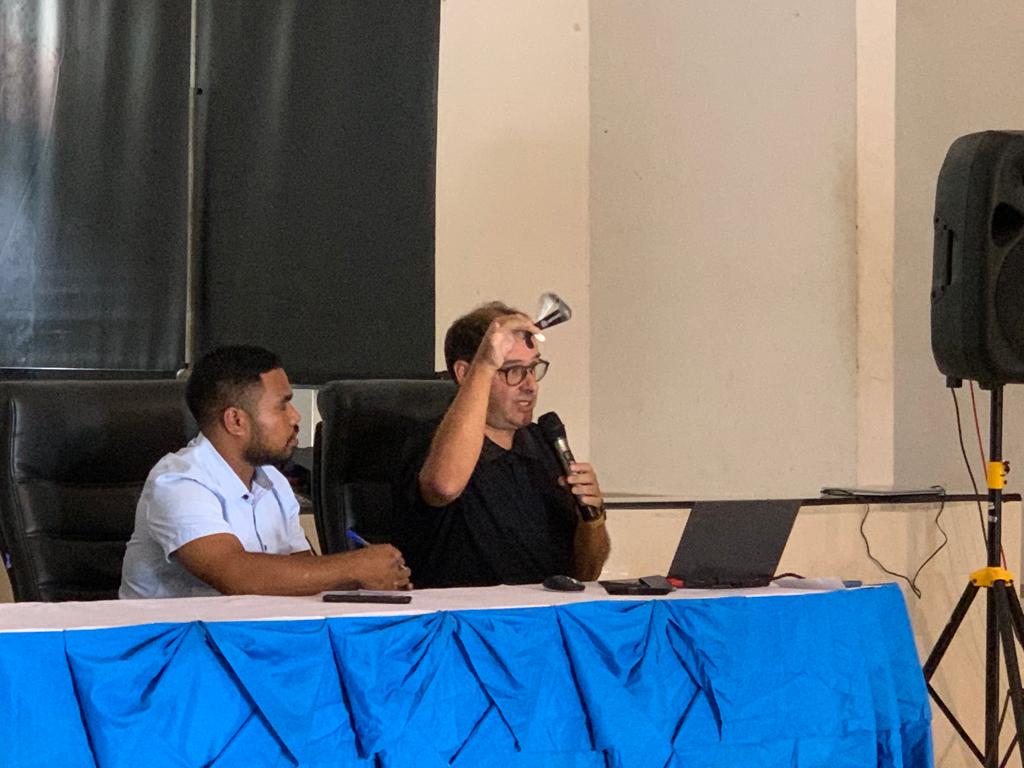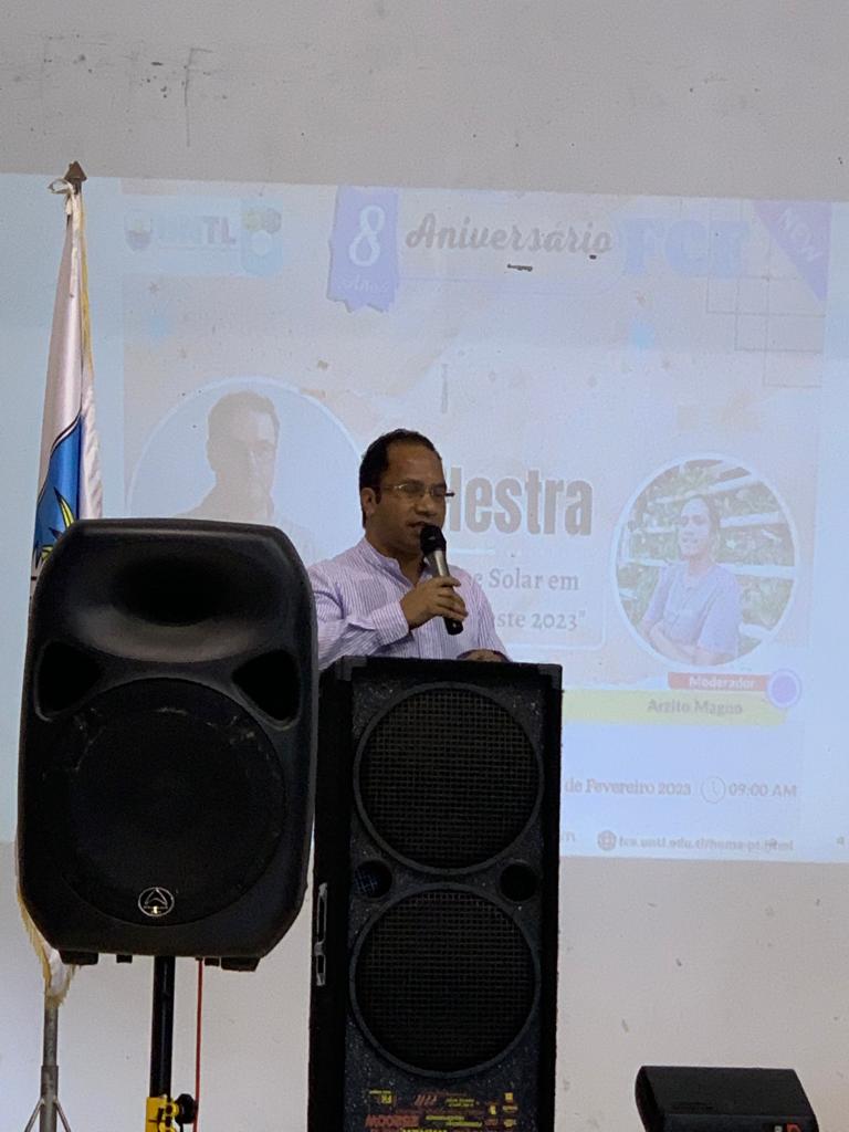 Relativamente o seminário há duas palestrantes que apresentaram: uma interna (Professor José Matias) área de especialidade de Física com o tema “Eclipse Solar” e uma externa (Doutora Maria Bairros), Embaixadora Portugal em Timor-Leste com o Tema “Oferta Formativa em Ciência”.